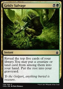 Reveal the top five cards of your library. You may put a creature or land card from among them into your hand. Put the rest into your graveyard.