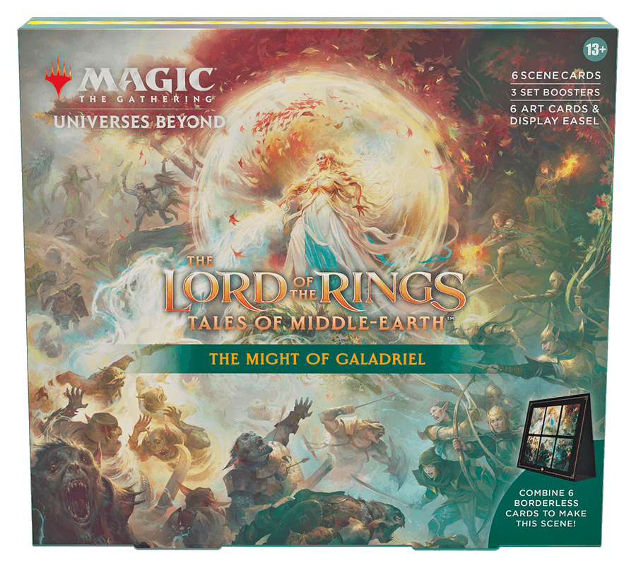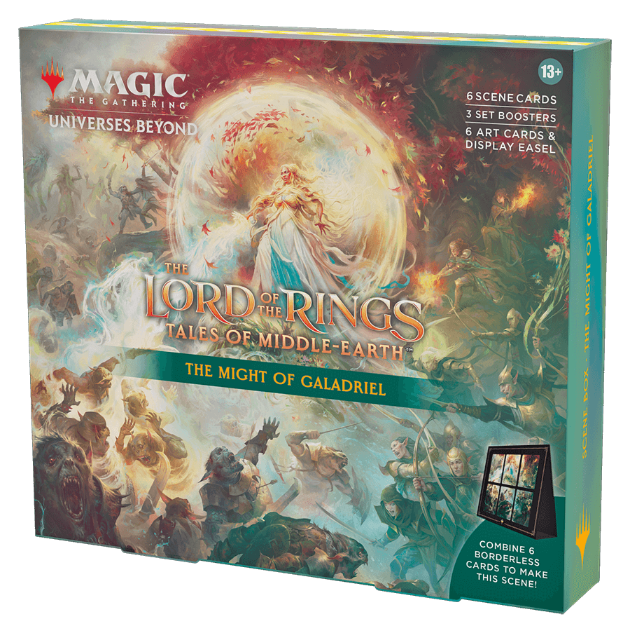 Each The Lord of the Rings: Tales of Middle-earth Scene Box contains 6 foil Borderless cards with art that combines to showcase one of the most epic scenes from The Lord of the Rings